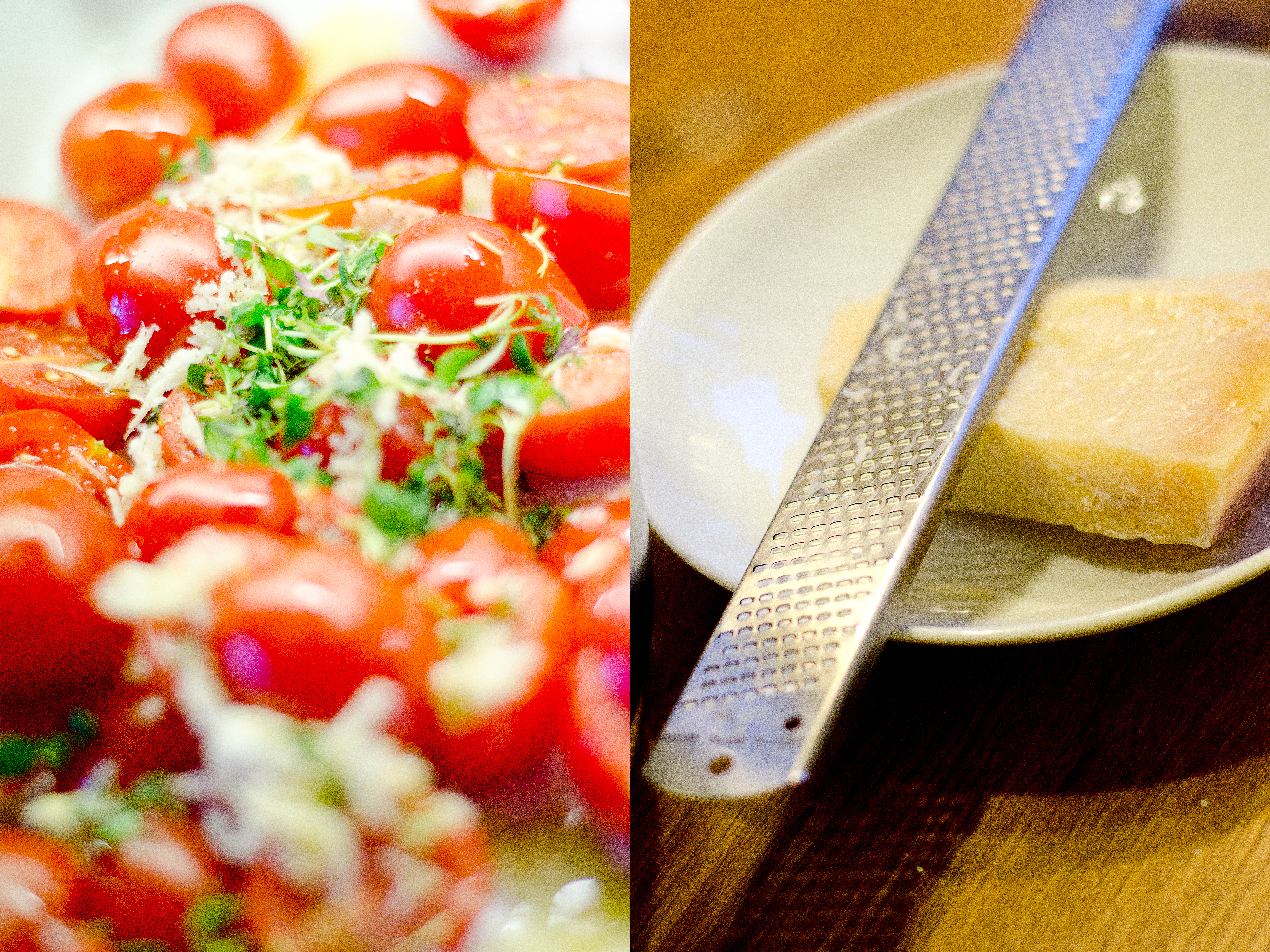 Sätt ugnen på 200 grader. Tag fram en ugnsfast form och lägg i den färska spenaten i botten. Lägg över filéerna, dela tomaterna och lägg i dem. Salta och peppra. Häll över grädden. Riv parmesanosten grovt och lägg över. Vips in i ugnen och låt det vara inne ca 20 minuter. Tips! ska du servera pressad potatis till så dela den gärna i mindre delar så blir koktiden kortare.
