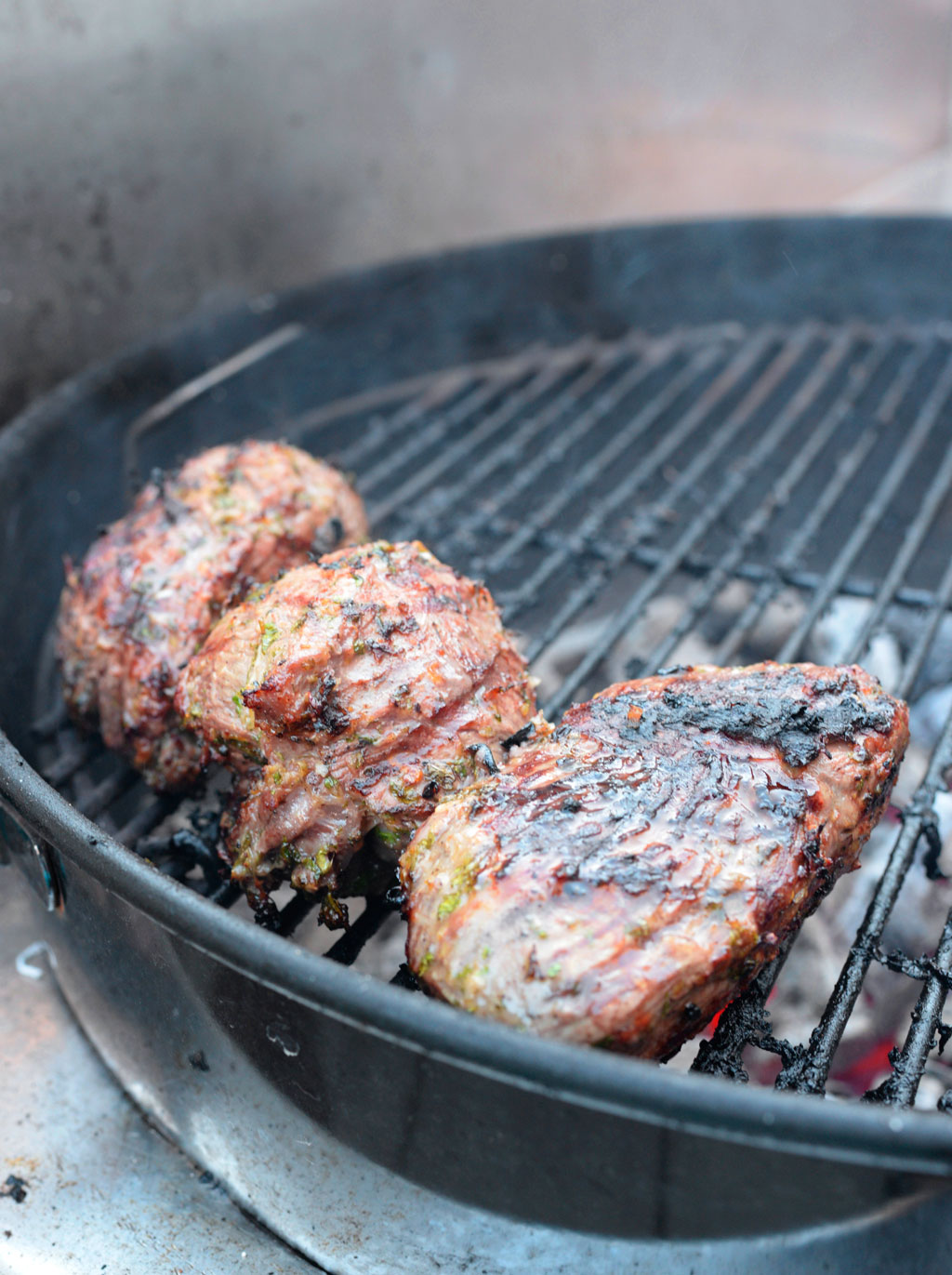 Riv skalet på citronen och pressa sedan ner innehållet i en skål. Mixa samman citronskal och juice med resen av ingredienserna till en tjockare olja. Vänd runt köttet och låt marinera någon timme. Vid grillning så saltar och pepprar du.