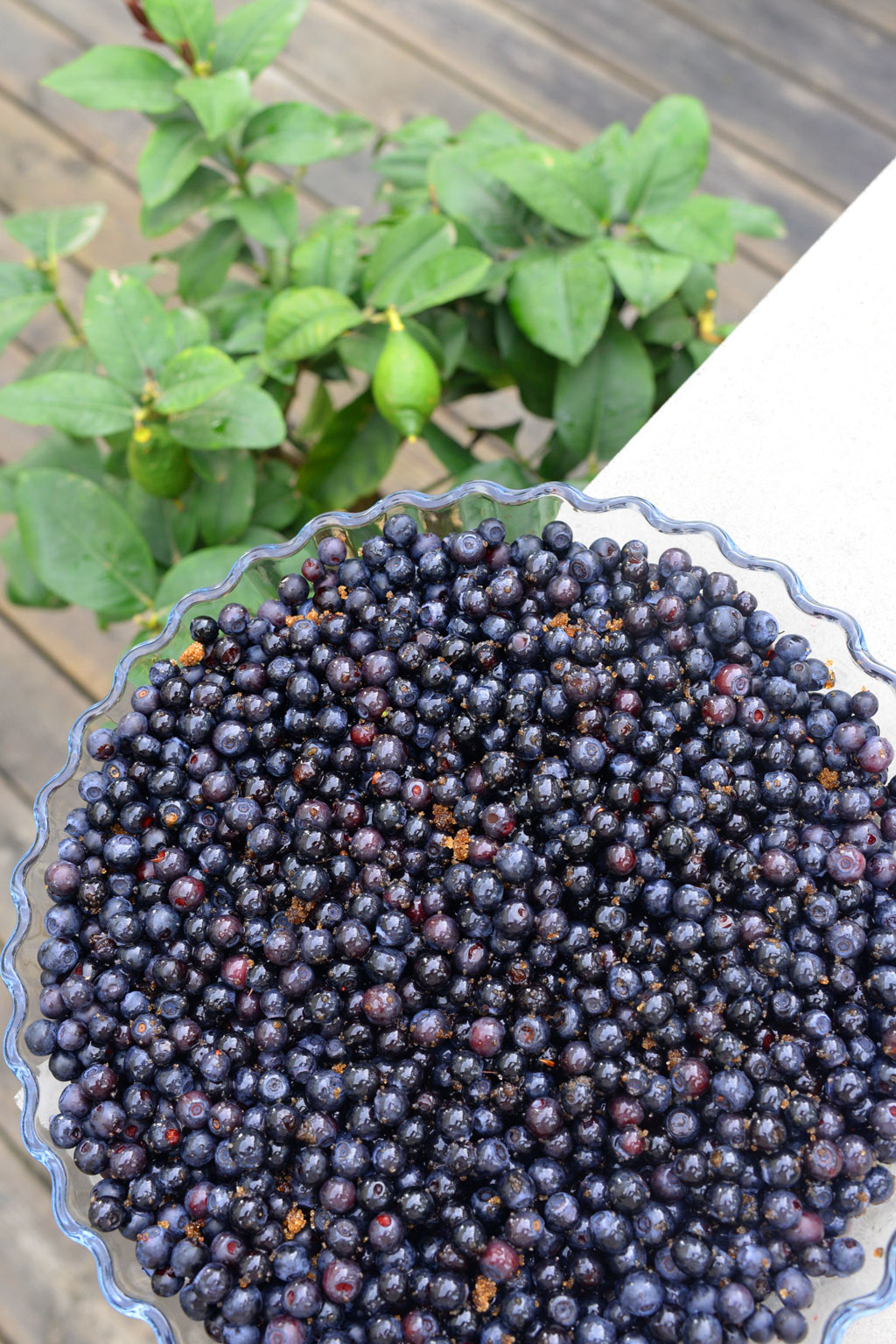 Blanda blåbär och finrivet limeskal med de torra ingredienserna och fördela i formen. Fördela sedan smuldegen ovanpå och kör in i ugnen 15-20 minuter.