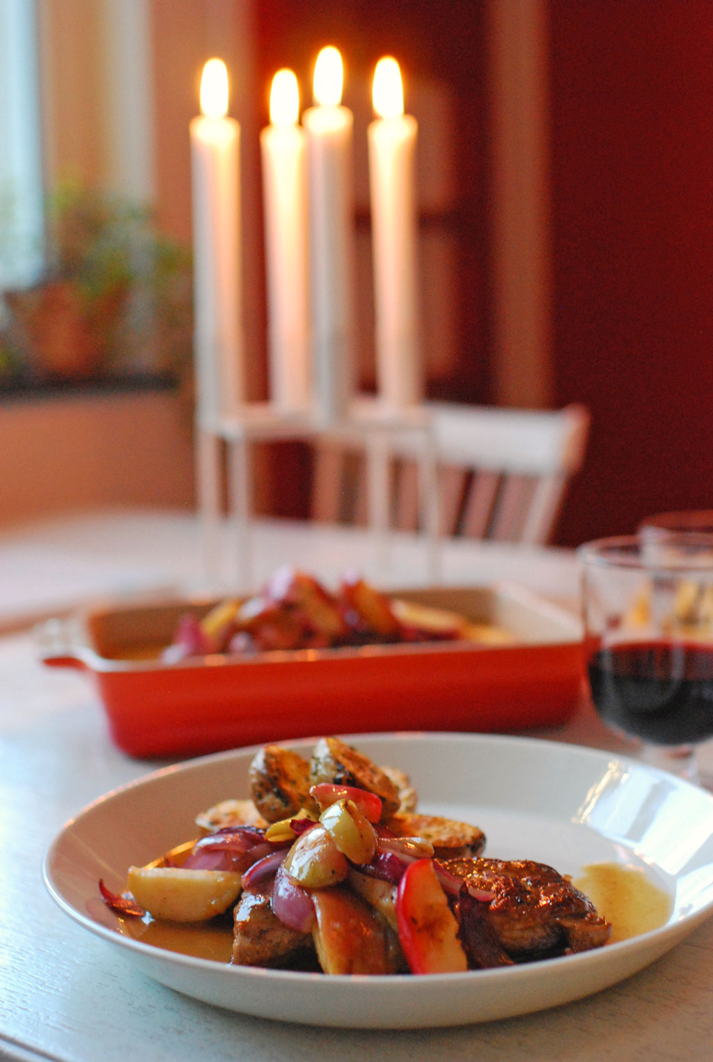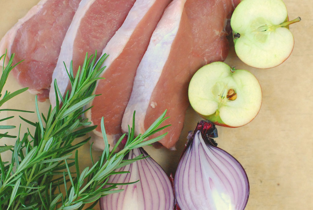 Fläskytterfilé med äpple och lök, rosmarinrostad potatis