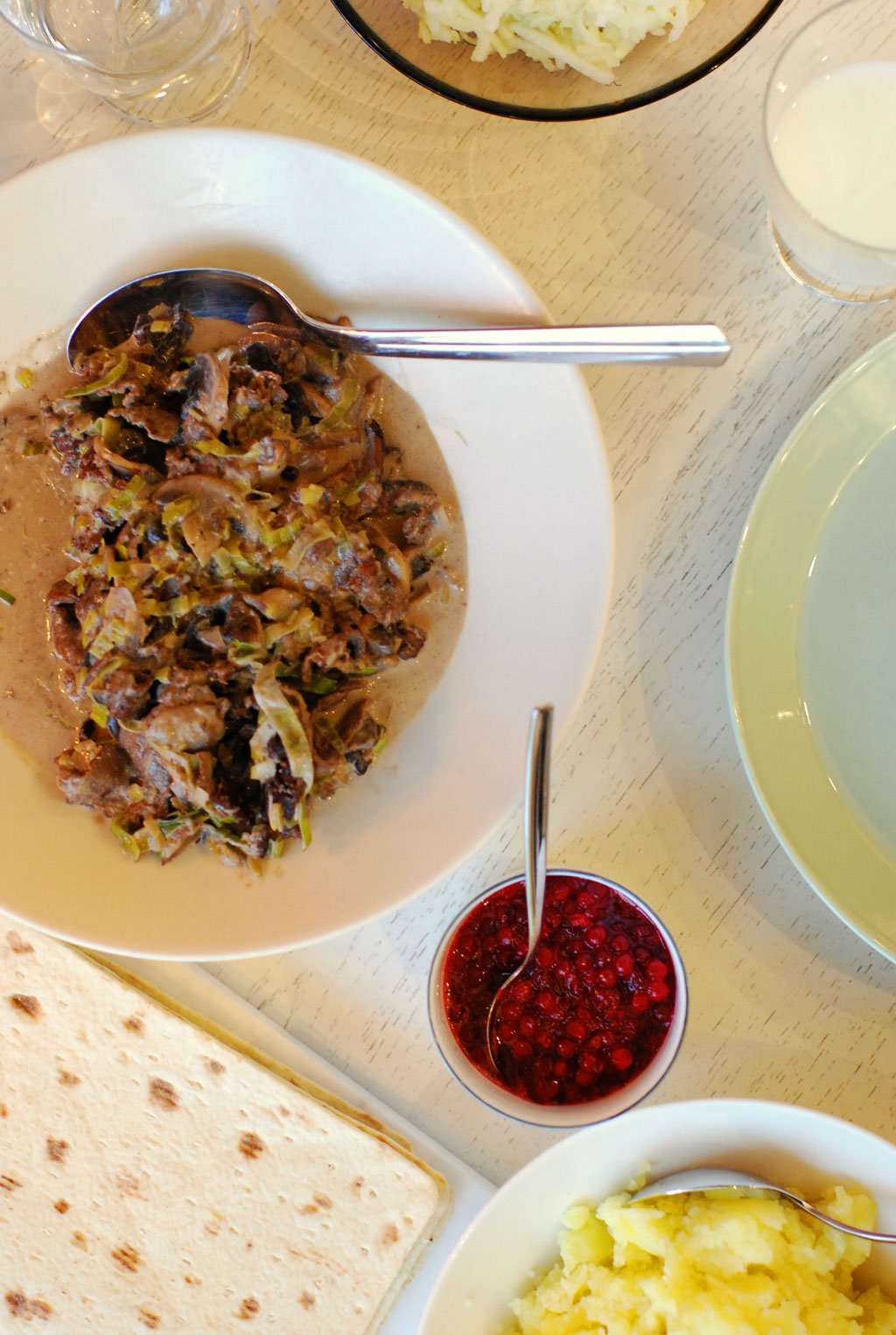 Mina svärföräldrar var uppe en sväng i Jämtland och hälsade på släktingar. Med sig hem hade dom älgkött i olika former och även en massa lingon. Mina svärföräldrar är fantastiska människor och delade glatt med sig så vi kunde ta del av dessa godsaker. En hel del kommer dyka upp på bloggen framöver, och jag börjar med en variant på älgskav. Självklart så kan du byta ut sort på skaven efter tillgång i butik eller efter jaktlycka. Vi serverar med rårörda lingon, jag har tagit med i slutet av receptet hur du gör detta själv. Detta sätt att äta på gick hem starkt i hela familjens gommar.
