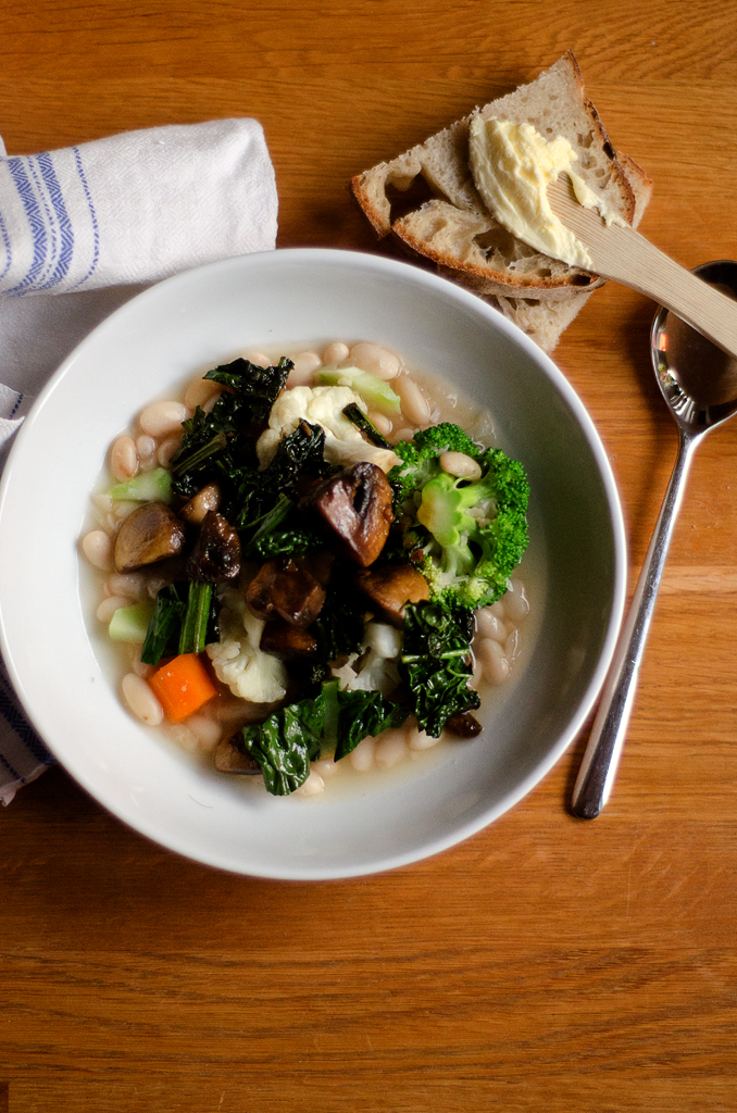 En höstig bönragu att äta med ett gott nybakt bröd. Jag gjorde denna på torkade små vita bönor, men om ni vill göra en snabb variant kan ni använda färdiga bönor, kanske ha i lite buljong och eventuellt krossade tomater eftersom man då inte använder kokspadet.