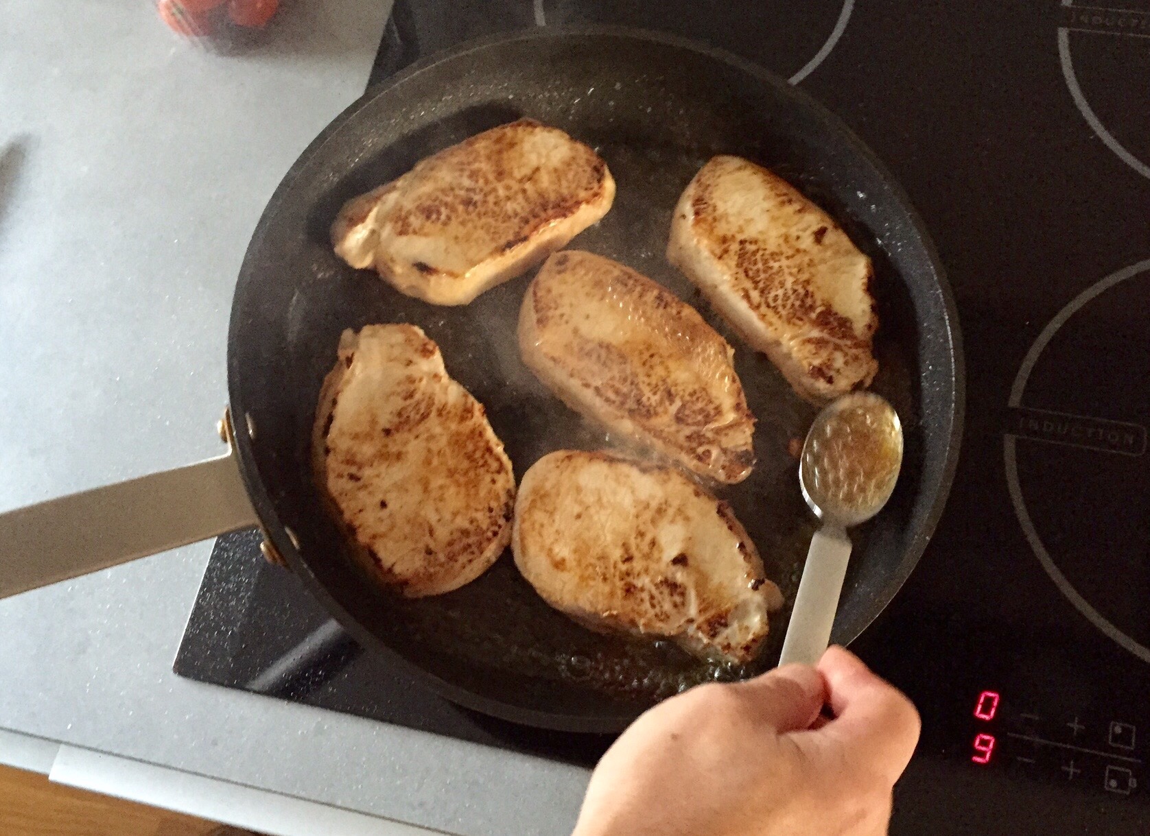Stek köttet på hög värme, ca 1 minut på varje sida. Tips! Ös gärna fettet över köttbitarna några gånger. Tag bort köttet från pannan. Dags att göra sås.