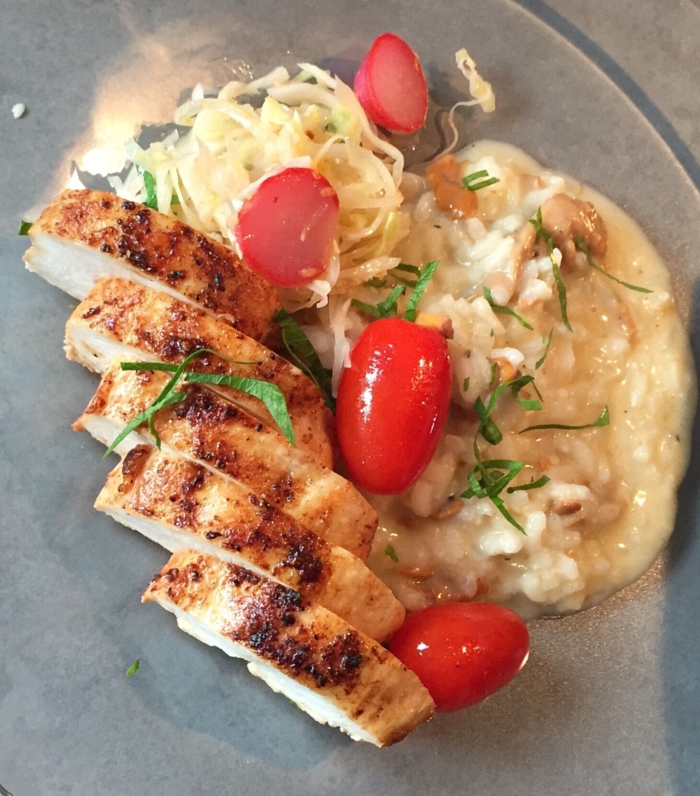 Jag smörstekte sedan kycklingfiléer som kördes klara i ugnen tillsammans med cocktailtomater på 150 grader upp till 65 grader i kärntemperatur. Tar ca 10-15 minuter.