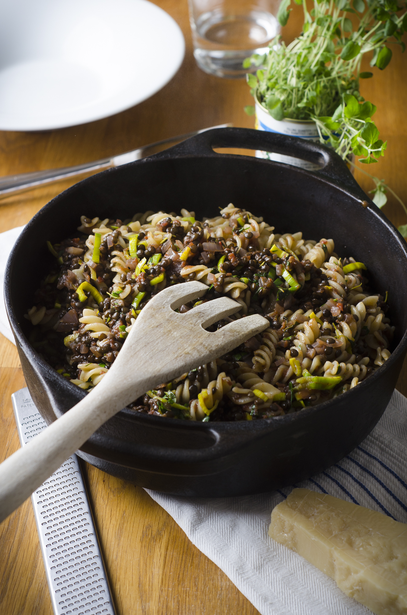 Fantastiskt god och snabb vegetarisk pastarätt som blir mättande och får fyllig smak av linserna. När vi äter vegetariskt lyxar vi ofta till det med färska örter, det blir så mycket godare!