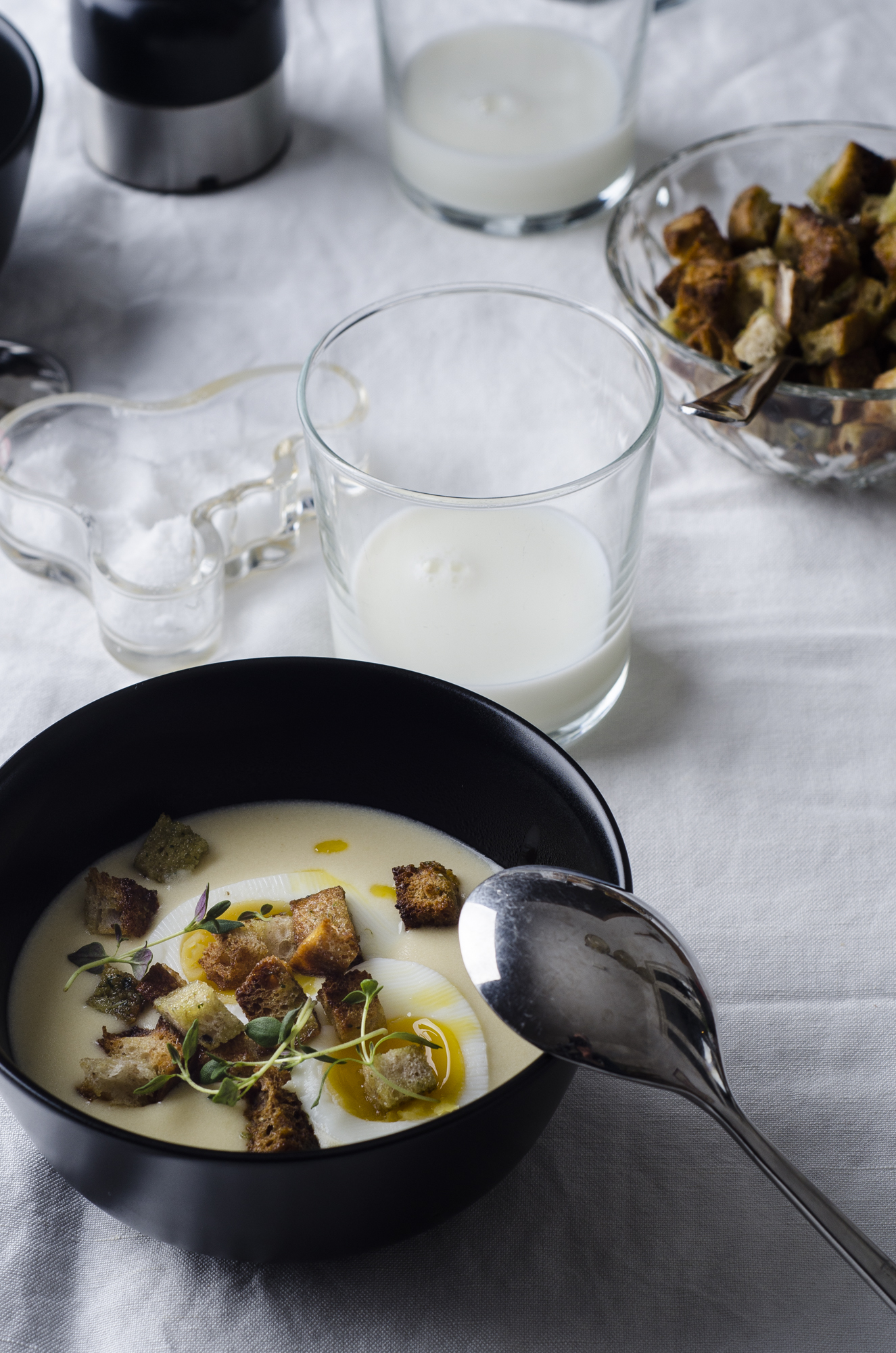 Servera soppan med ägghalvor och krutonger. Enjoy!