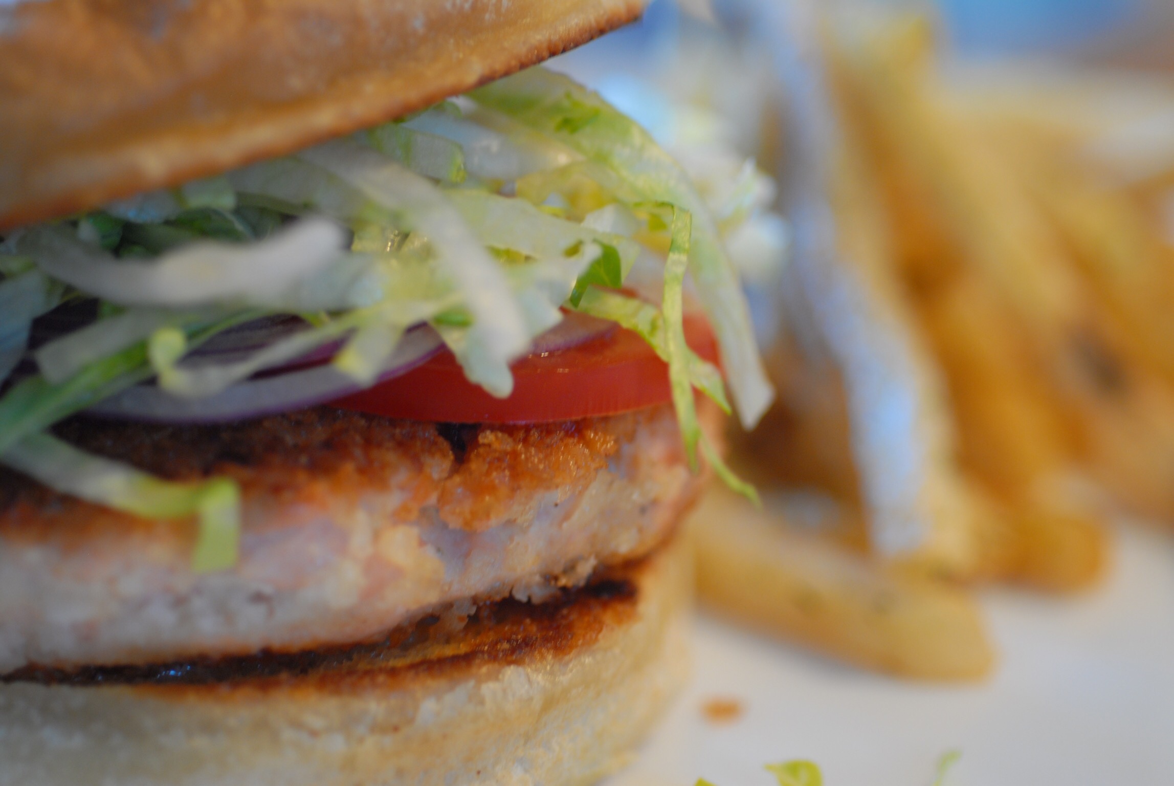 Vi serverade med sallad, tomat, lök, chilimajonäs och pommes smaksatta med torkad dill.