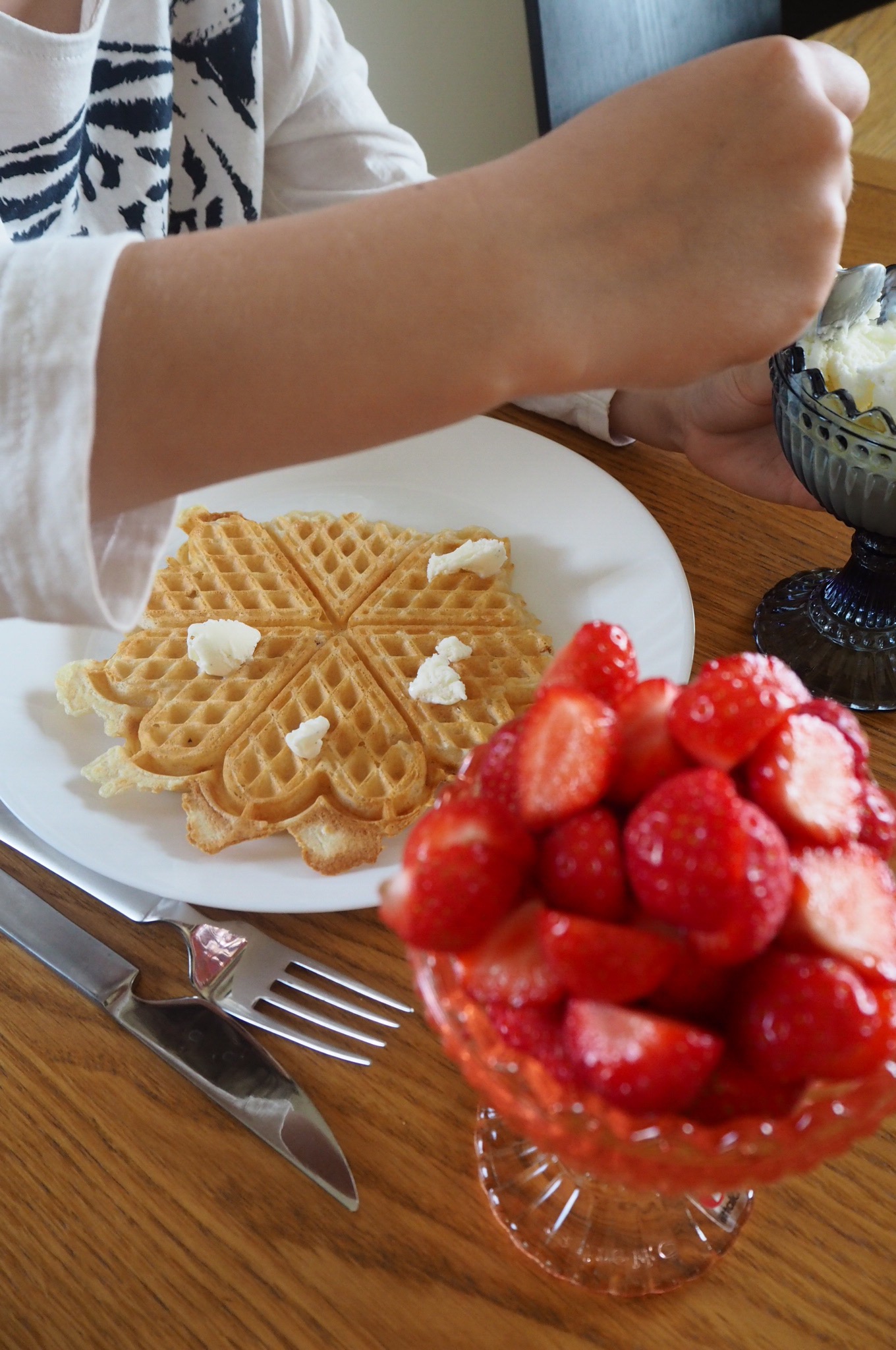 Recept på våfflor som sambon vuxit upp med kommer här och det är nog bästa receptet jag testat faktiskt. Tror det är grädden som gör det!