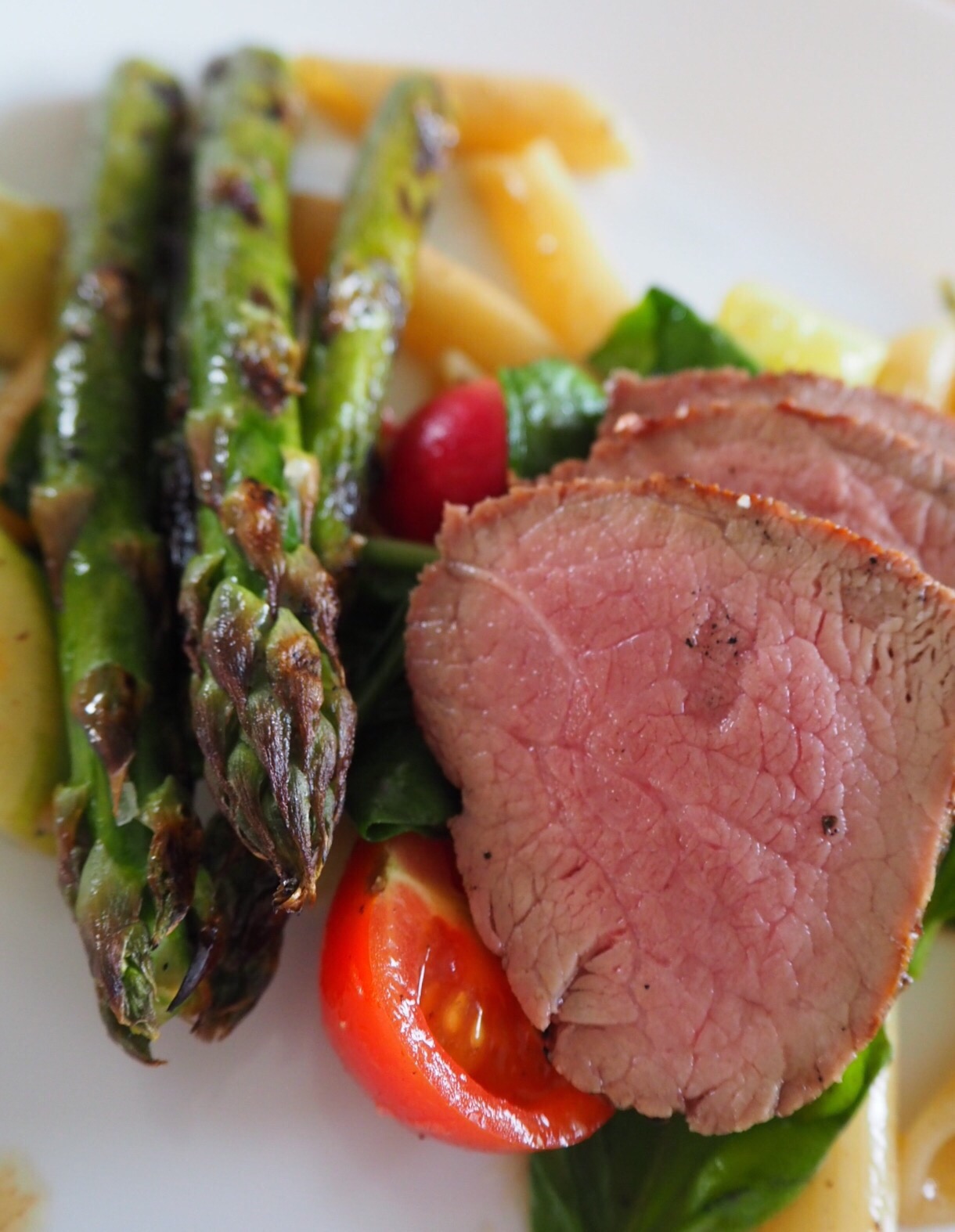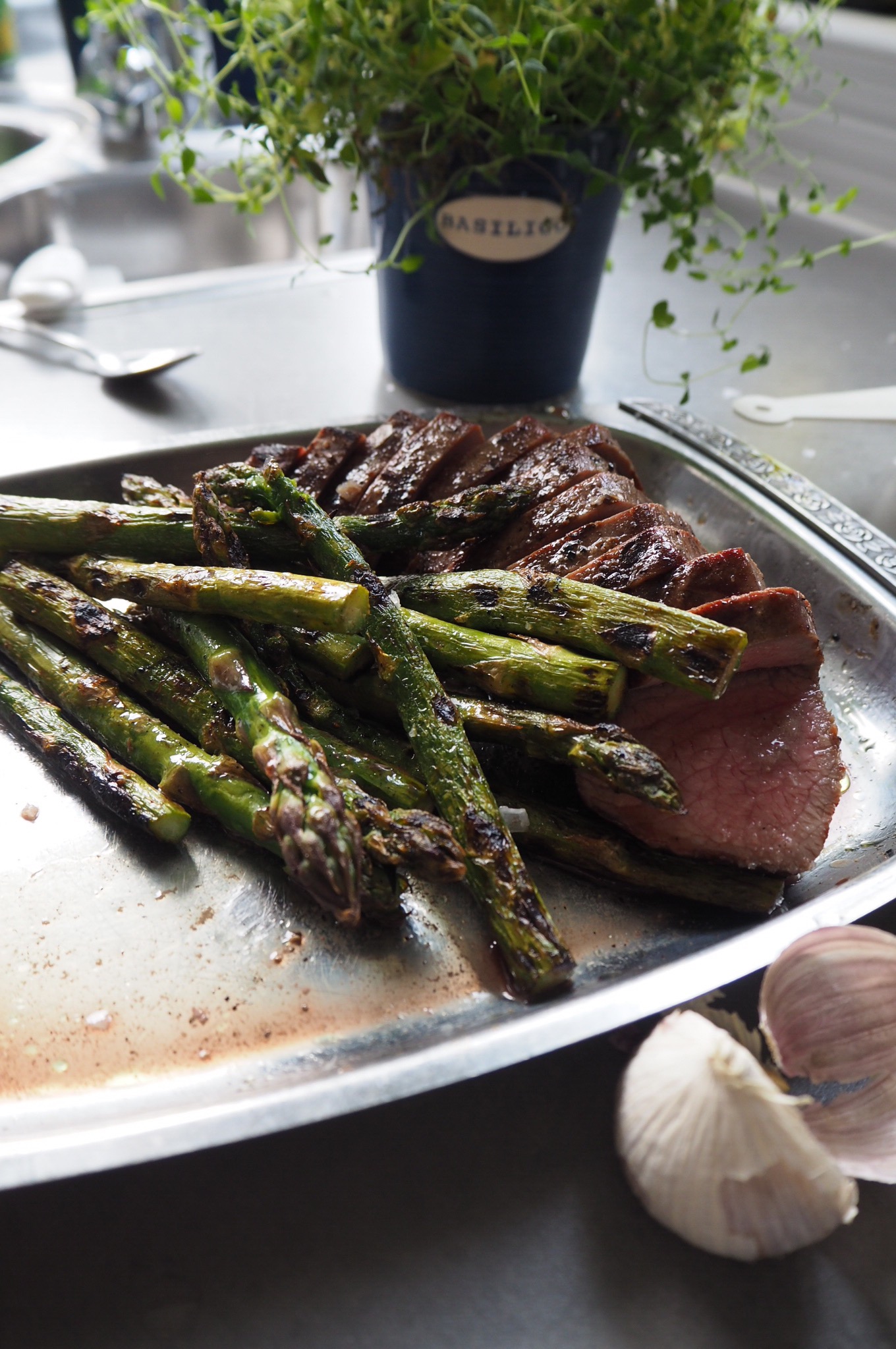 Grilla köttet tills innertemperaturen är 54 grader och ta bort det från grillen och låt det vila 10-15 minuter innan du trancherar (skär upp) köttet.