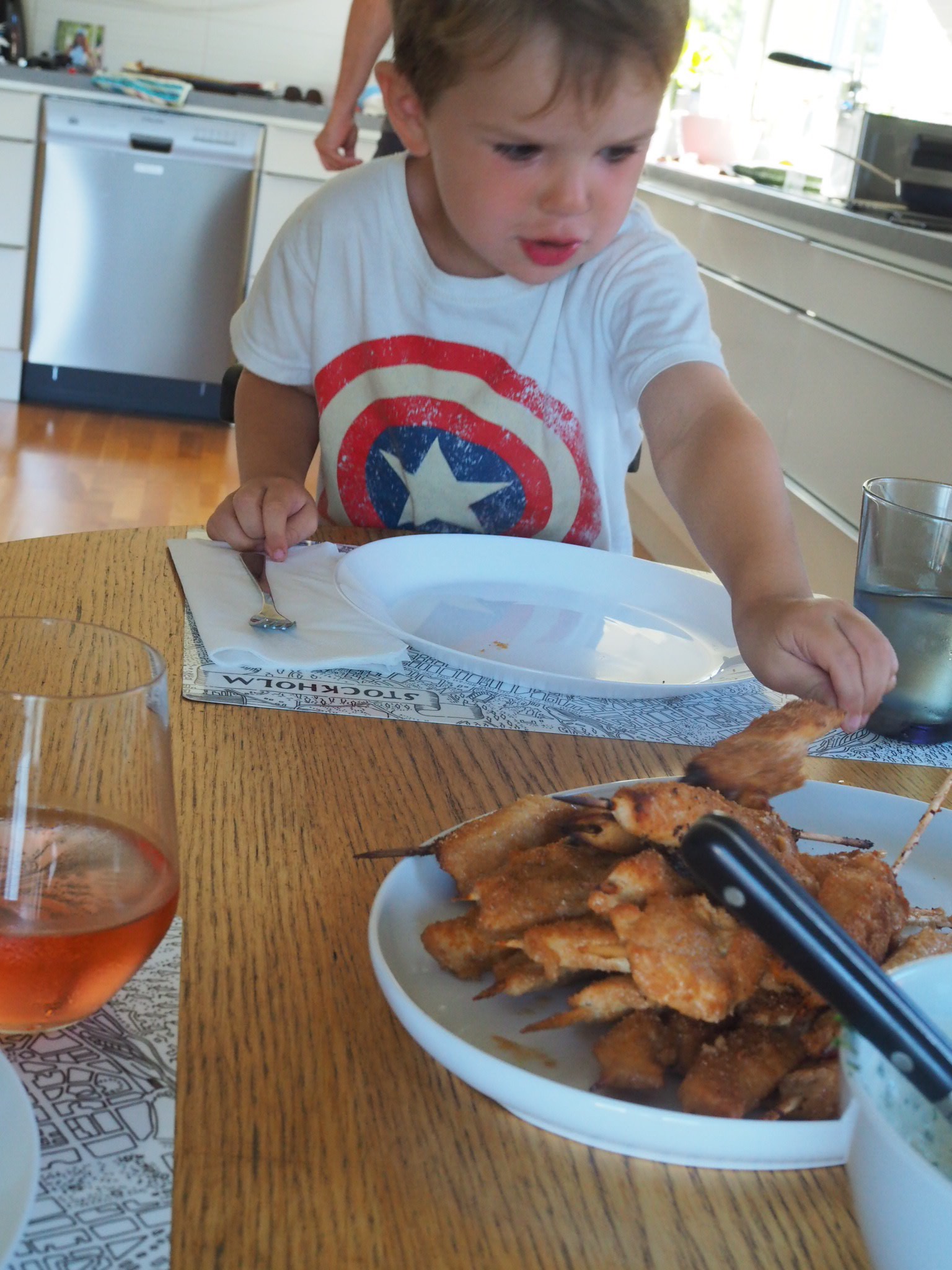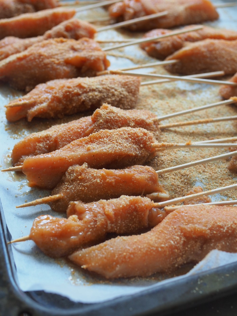 En fräsch sommarrätt med smaker från lite olika delar av världen. Spetten kan även vara bra att göra och ha färdiga i frysen, passar att ha även på picknicken eller buffén.