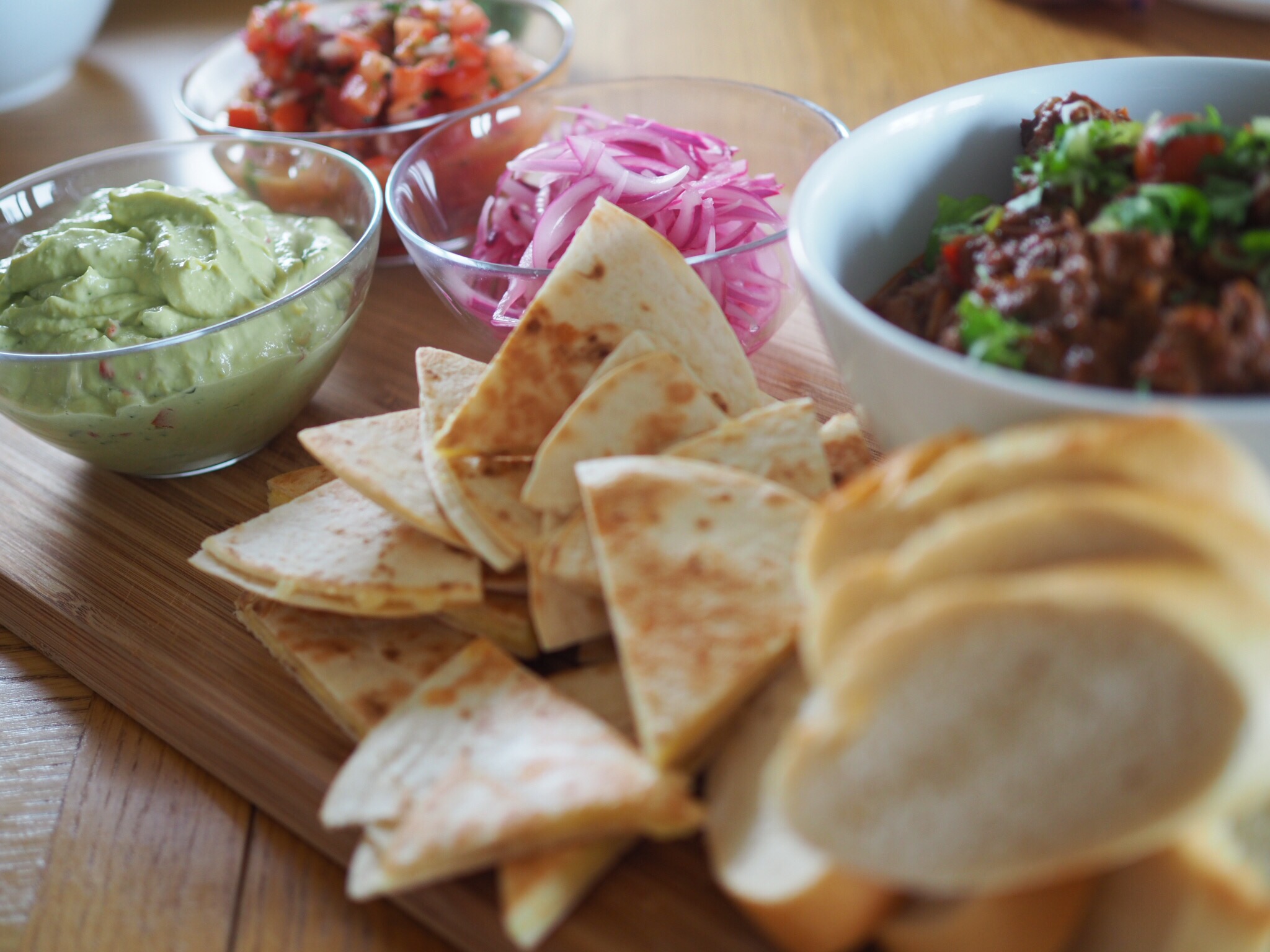 Mustigt och gott, hur gott är det inte med en chili och olika tillbehör till? Här serverade vi med ostquesadillas, syrad rödlök, gucamole och tomatsalsa. Du kan styra hettan, jag tycker det ska vara mustigt med sting från chilin, inte att det blir för starkt och tar över.