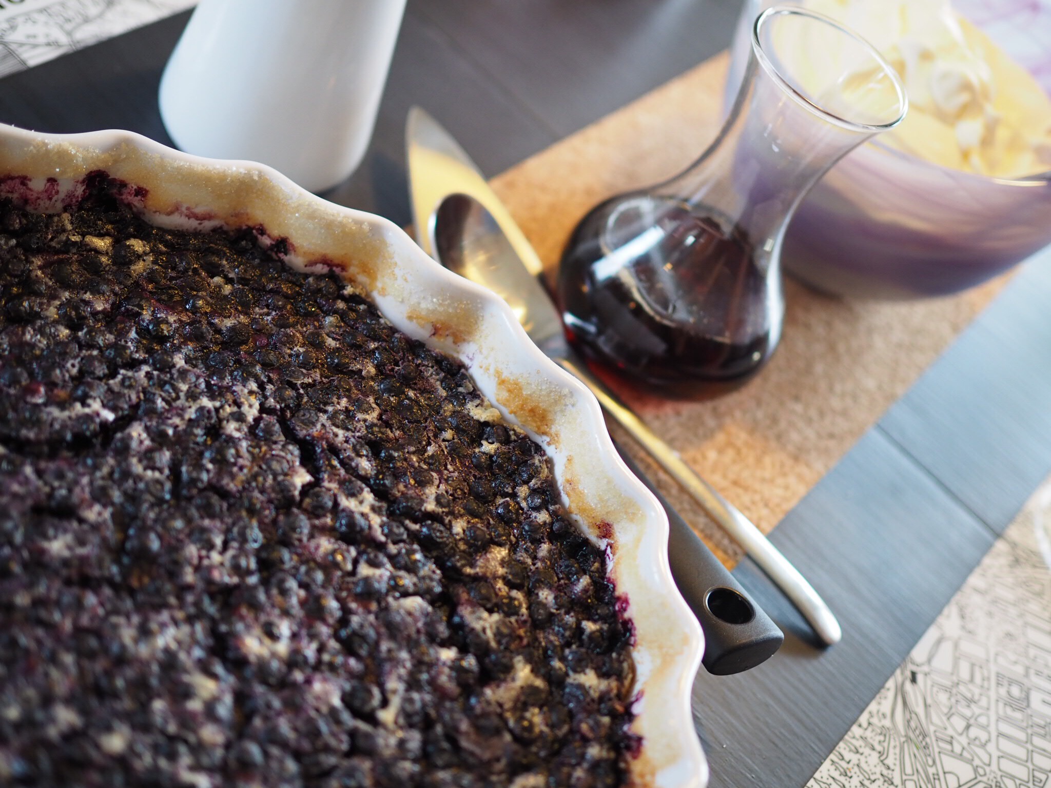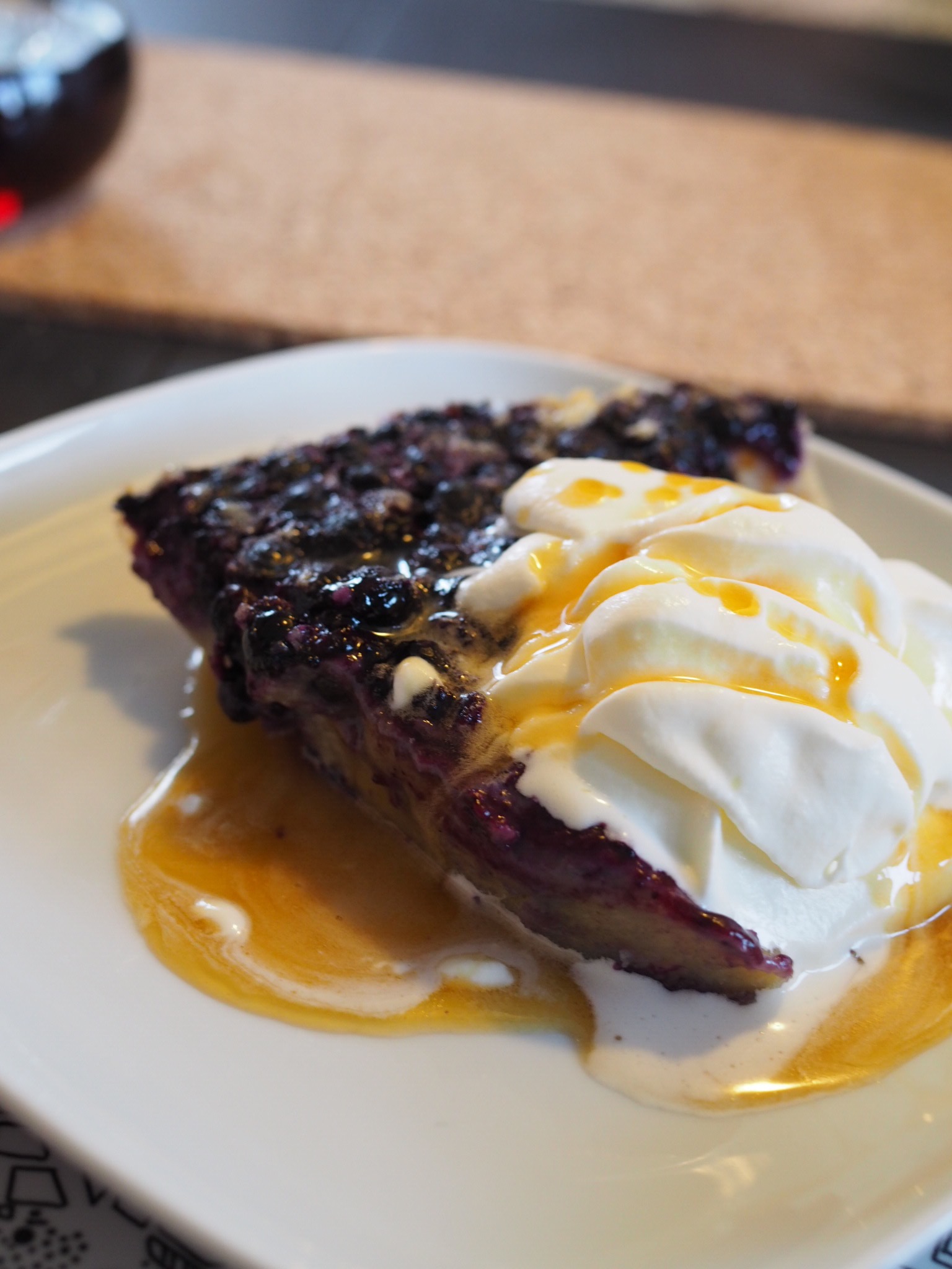 Fransk klassisk dessert som jag testade på brunchen sist. Clafouti är som en mix av ugnspannkaka och bruleé. Det vanligaste är att man använder körsbär, men det funkar i stort sett med vilket bär som helst. Smöret behöver inte brynas men jag tyckte det skulle bli en spännande smak tillsammans med blåbären och lönnsirapen.