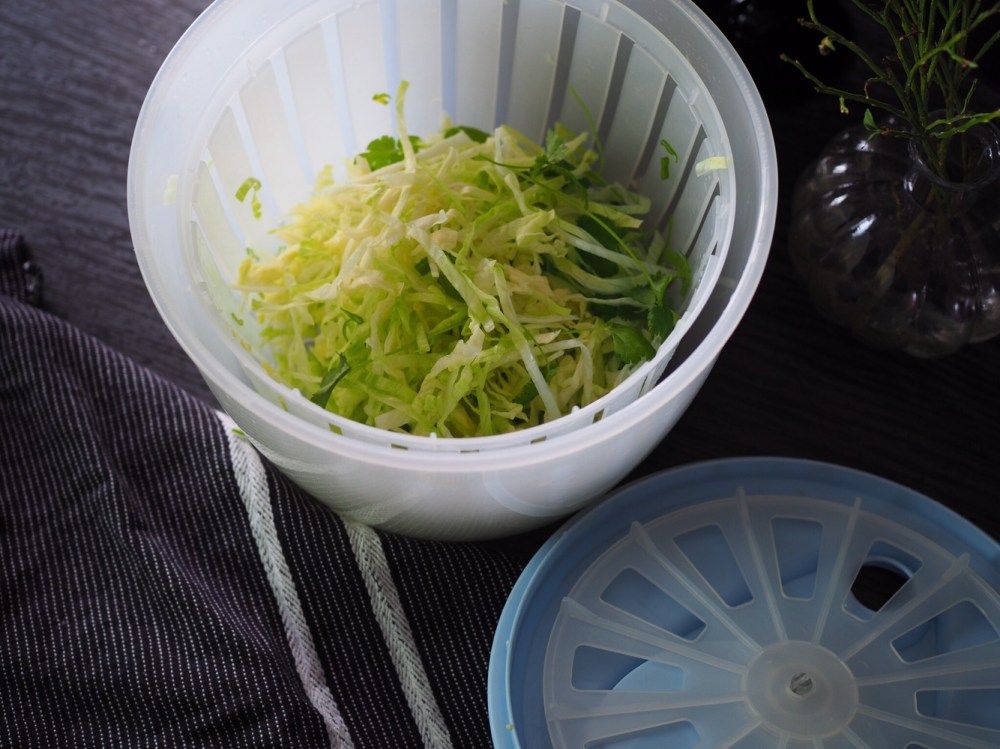 Min sambo tycker jag är lite nördig när jag köper nya maskiner/knivar/köksutrustning osv. Men en sak som har blivit accepterad är salladslungan. Du kan rädda många sallader som är på väg ner i sopen med den. Lägg salladen i kallt vatten, så det täcker, i 30 minuter till en timme. Häll av vattnet och slunga sedan salladen i salladsslungan. Lägg sedan salladen i en burk och sätt på locket. Sen kan den klara sig här flera dagar.