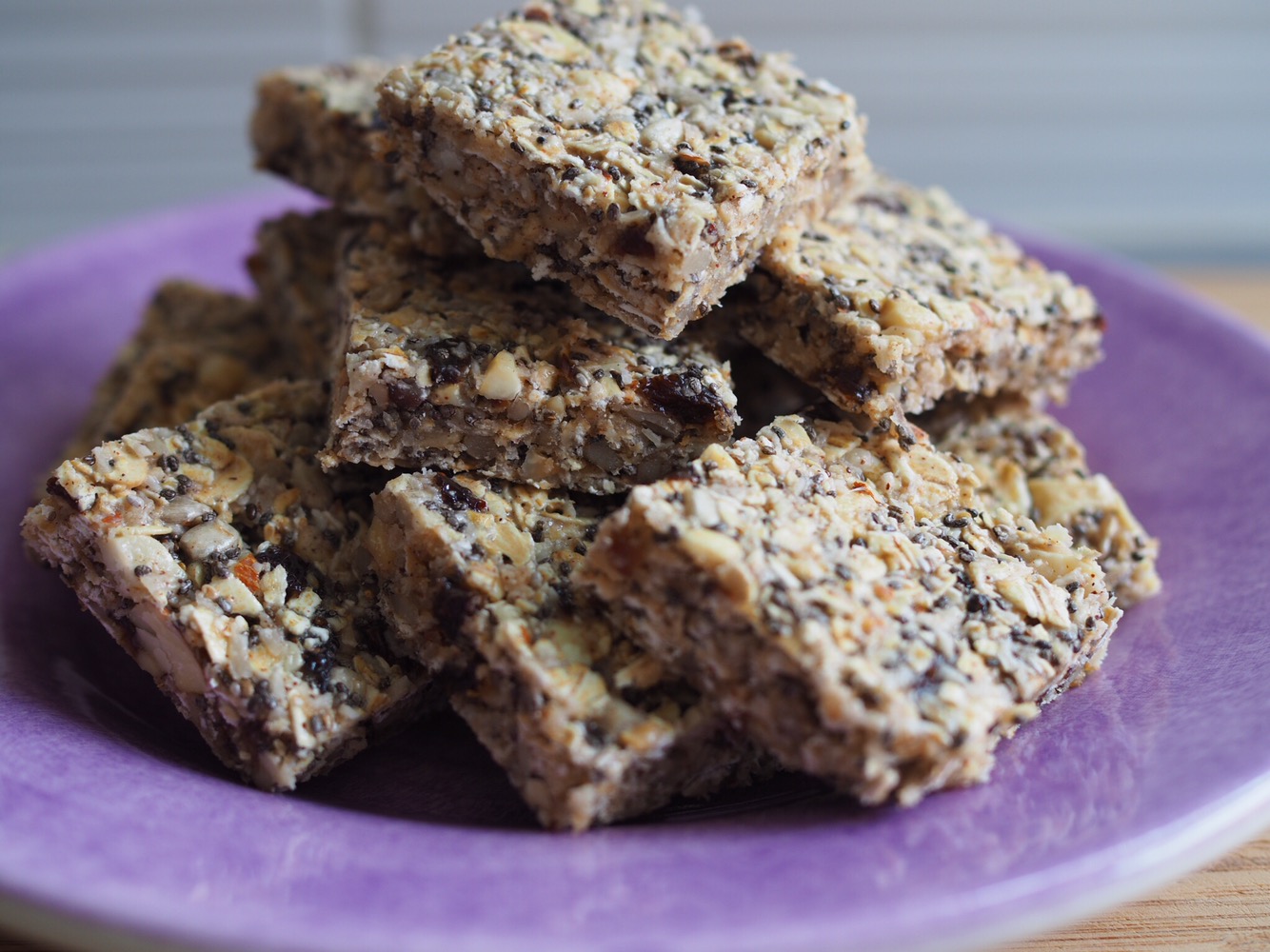 Sätt ugnen på 125 grader. Blanda alla torra ingredienser. Värm upp mjölken och tillsätt den sedan och blanda ordentligt. Lägg ett bakplåtspapper på plåt ca 20x30cm och häll på smeten. För att jämna till den så kan det vara ett tips att blöta handen och klappa ut det sista. Grädda mitt i ugnen i 1 timme. Låt den svalna och skär sedan önskade storleksbitar.