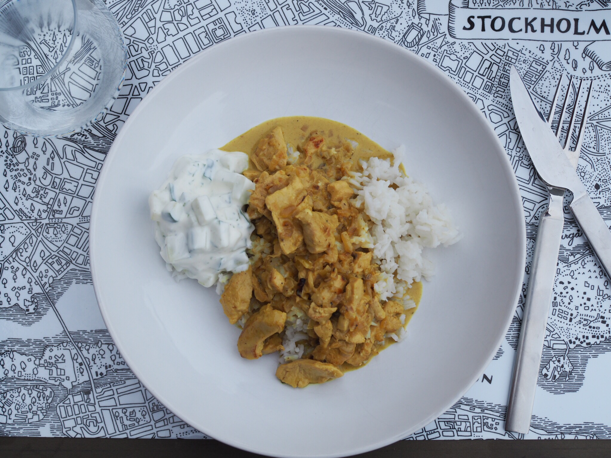 Skolans currysås är det många som minns, så ville testa göra en curry och se vad barnen tyckte. Genom en bekant fick jag några prover av olika curryblandningar från Systrarna Khanna. På en av dem gjorde jag denna snabba curry. Blandningarna är gjorda i Göteborg av gamla familjerecept. Testa gärna om ni får möjlighet!