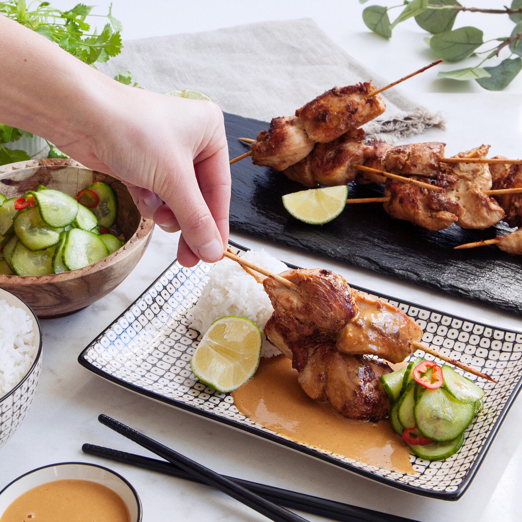 Onsdag har vi rätten som vi också har på mathem denna vecka, kycklingspett med snabb jordnötssås och chilipicklad gurka När vi var inne och lagade upp maten på Mathem så var det en riktigt uppskattad rätt!