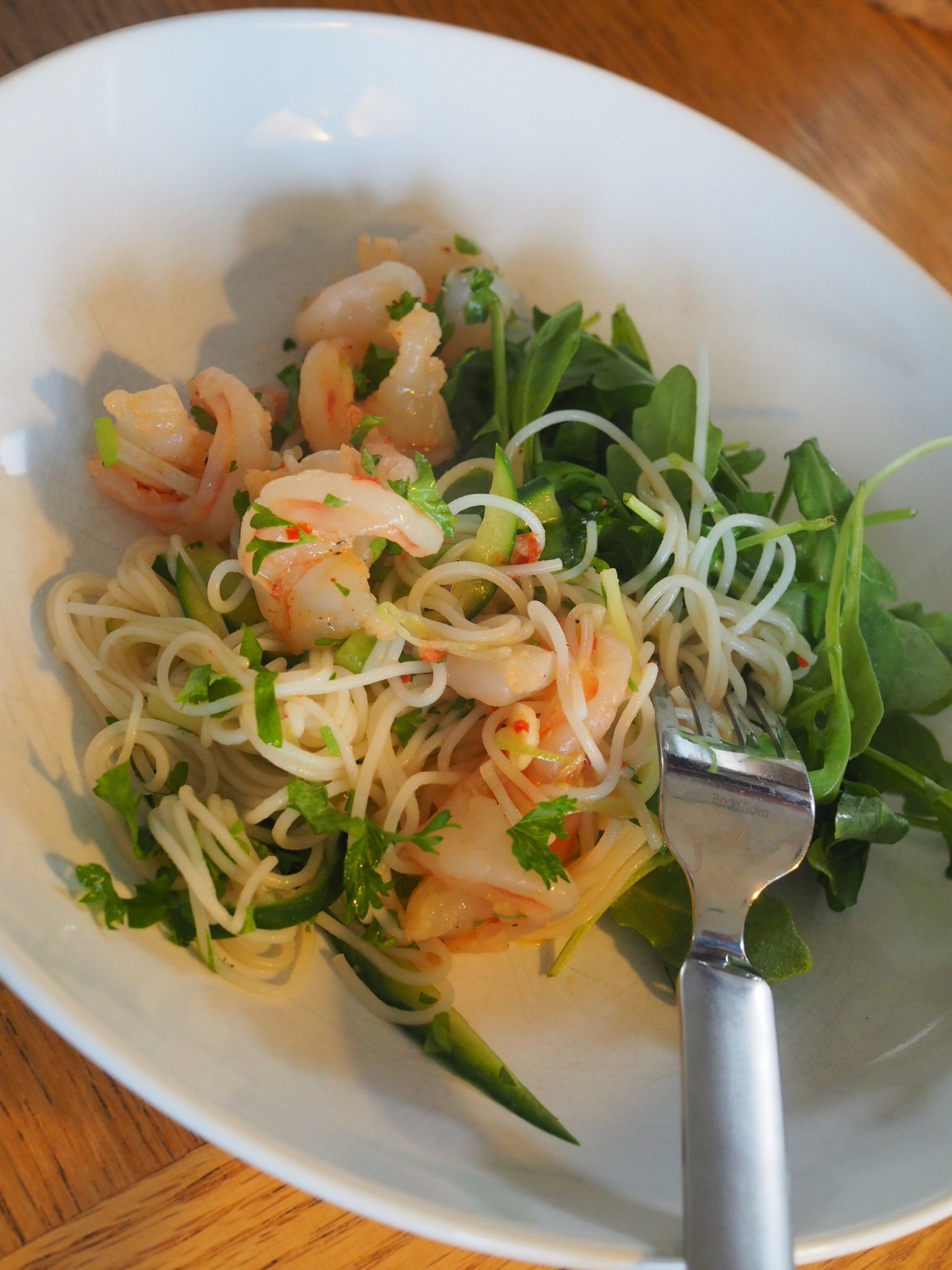 Torsdag blir det pasta och i denna rätt bytte vi sist ut pastan mot risnudlar och det fungerade minst lika bra, Gambas aj ajillo med pasta och grönsaker